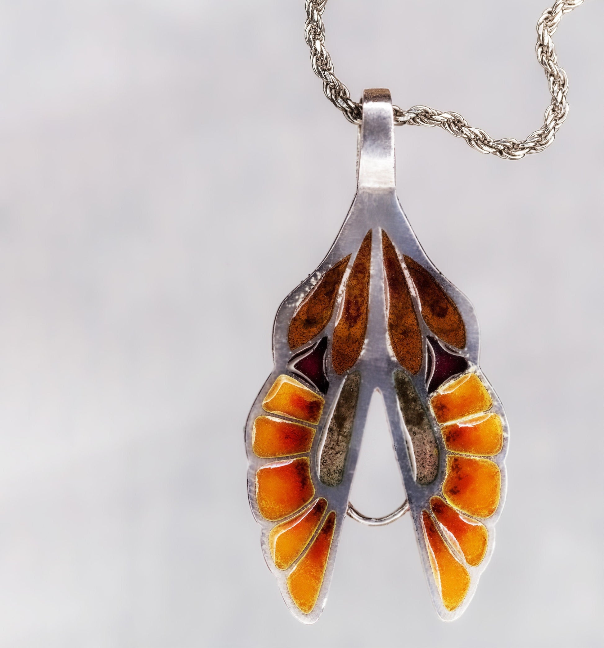 Amber flower - Handmade Silver Pendant with Cloisonné Enamel